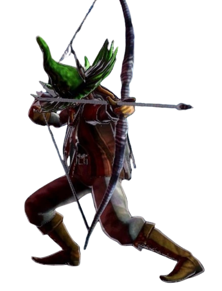 As an enemy, Barbatos has two main ways of attacking. The first is by tracking the player from the ground and shooting an arrow in their direction, and the second is by jumping into the air and aiming downward at the player. Both attacks are telegraphed by a slight light appearing at the tip of his arrow.
