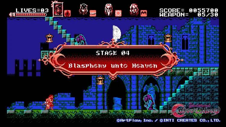 Blasphemy unto Heaven is the fourth stage in Bloodstained: Curse of the Moon.
