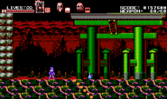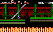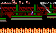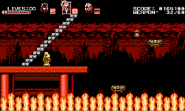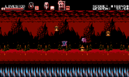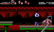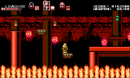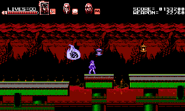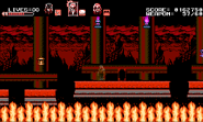 This hellish stage is a Japanese-themed volcanic mystic zone that consists of three different paths where the heroic trio must split up in order to make progress. Whenever a mini-boss is defeated by one party member, the gameplay swiftly moves on to the other due to the ability to switch between party members being disabled. The darkness-influenced Zangetsu, with his sword reinforced as arm blades, is waiting inside the throne room in his deepest lair to challenge the trio. Only Miriam is playable during the final battle while Alfred and Gebel occasionally provide assistance to help fend off attacks that she couldn't dodge on her own. The background in the deep lair shows a black circle, proving the fact that the moon in the night sky is in its new moon phase.