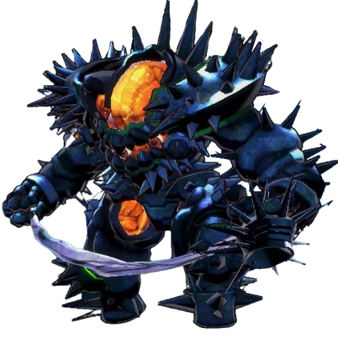 A headless knight that attacks by swinging his own head like a flail. Landing a hit on its orange head area deals more damage than the rest of its body. It occasionally drops Bronze when it is defeated in combat.