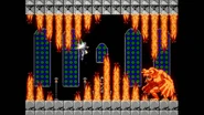 - Stays on one side of the screen and starts flapping his wings (turning red as he does so), producing large fountains of fire on both the floor and ceiling that travel toward the opposite side. The player should carefully time their (double) jumps and move accordingly to remain in the safe spaces left between both top and bottom flames.