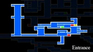 The Entrance zone also connects to the Forbidden Underground Waterway at two points, one becoming relevant way earlier than the other. When you are able to explore the waterway's "east half" early in the game, going out through that half's northwest door will deposit you back at the 2×4 stair room, on the other side of the locked-off southeast corner where you can pick up a previously visible HP Max Up. Flipping the lever here permanently opens up that door to allow for easier access to the Waterway.
