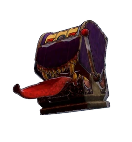 The Millionaire's Bane at first glance resembles a classic "one-armed bandit" slot machine. When confronted (or attacked in following encounters), it reveals a mouth lined with fangs and a large red tongue. The creature's "face" is a three-reel slot machine, which when activated, can produce a variety of effects.