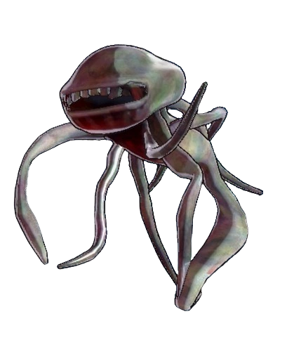 The Seama is a slimy tentacled creature that resembles an octopus, with a main tentacle making for its body and smaller ones that make for the arms. One of its most distinctive features is that it has a large, human-like mouth that runs along its head, with equally human-like teeth, but other than that, the rest of the head doesn't have any other particular features like eyes, nose or ears.