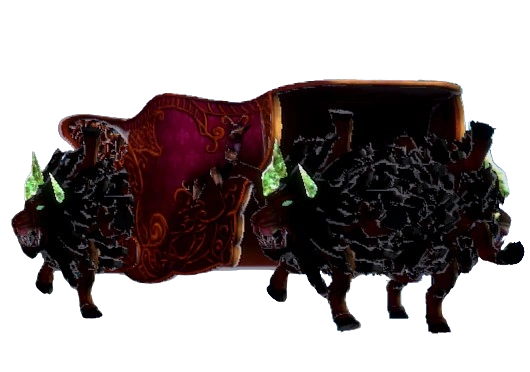 A sumptuous chariot-like car with three Buers for wheels, one on the front and two on the rear. It violently makes rounds forth and back a determined distance, running over the player if they stand on its way. On the other hand, it is also possible to stand on the carriage without sustaining damage and hitch a short ride on it.